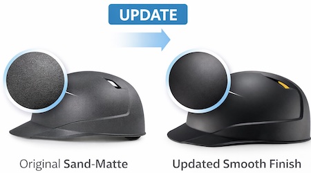 The updated smooth, regular-matte finish is easier to clean, and it does not scuff as easily. This results in a skull cap that is easier to maintain and to retain its professional look throughout the season.