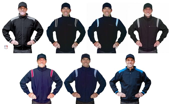 If you are looking for a traditional umpire jacket, the most popular ones are the Smitty Half-Zip Jackets. These have been around the longest, offer medium weight and are available in 4 color-trim combinations.